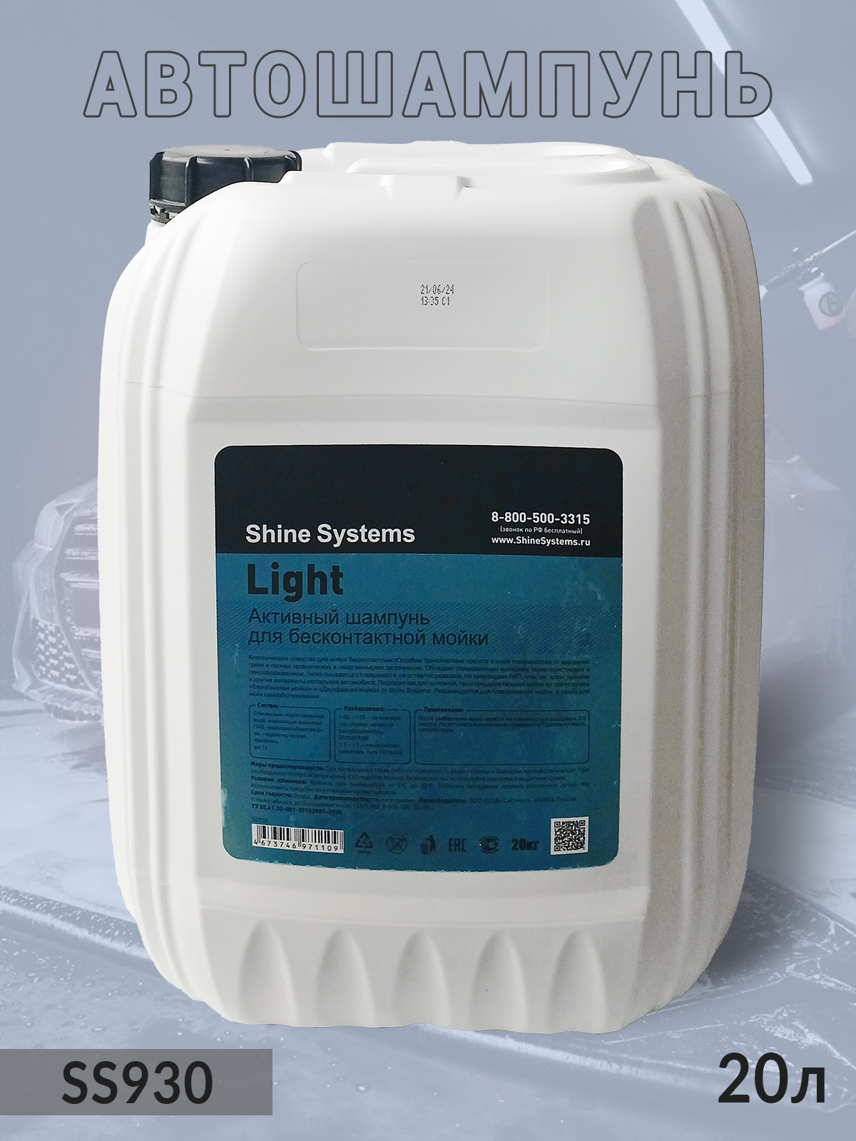 Автошампунь Light от SHINE SYSTEMS (SS930) — классическое средство для бесконтактной мойки транспортных средств. Light (SS930) — это универсальное классическое средство для бесконтактной мойки любых транспортных средств и поверхностей от дорожной грязи, органических и неорганических загрязнений. Обладает повышенными моющими свойствами и отличным пенообразованием, что обеспечивает глубокое обволакивание и очистку. Средство легко и полностью смывается водой, не оставляя разводов, и при этом бережно относится к материалам: не повреждает ЛКП, пластик, хром, резиновые уплотнители и другие элементы экстерьера. Идеально подходит в качестве основного или предварительного состава по технологиям «Европейская мойка» и «Двухфазная мойка» от Shine Systems. Рекомендовано для повседневного применения, а также для моек самообслуживания.