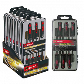 Набор надфилей AMPRO T19523 комплект для выполнения тонкой работы. Мелкие насечки на полотне позволяют добиться высокой точности обработки. Длина надфилей составляет 100 мм.
