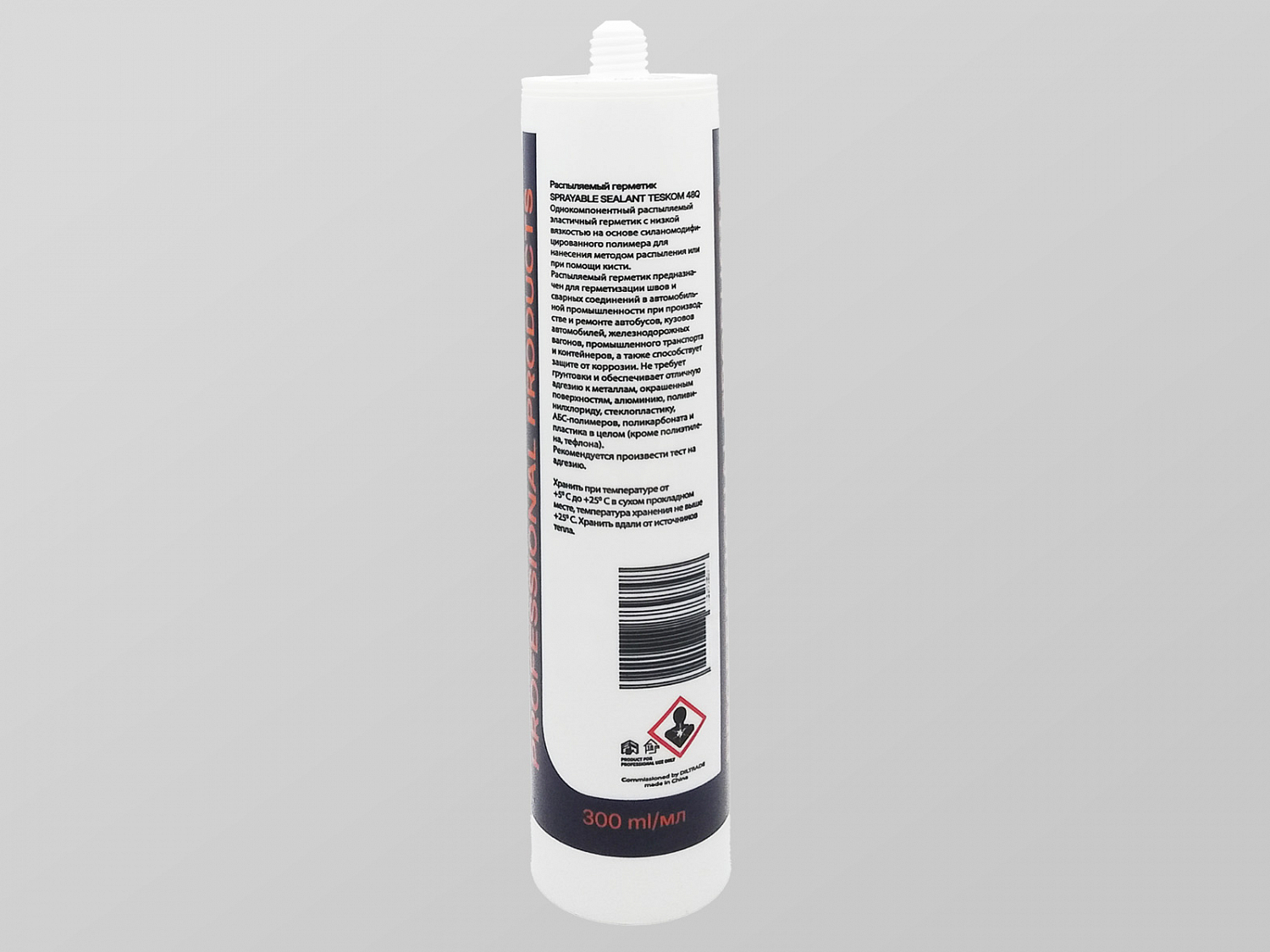 Однокомпонентный распыляемый герметик TESKOM (TEC48Q/BL) на основе силаномодифицированного полимера применяется для нанесения методом распыления или при помощи кисти. Обладает хорошей эластичностью и низкой вязкостью. Предназначен для герметизации швов и сварных соединений в автомоюильной промыщленности и при ремонте. Способствует защите от каррозии. Не требует грунтовки и обеспечивает отличную адгезию к металлам, окрашенным поверхностям, алюминию, поливинилхлориду, стеклопластику и различным видам пластика (кроме полиэтилена и тефлона).