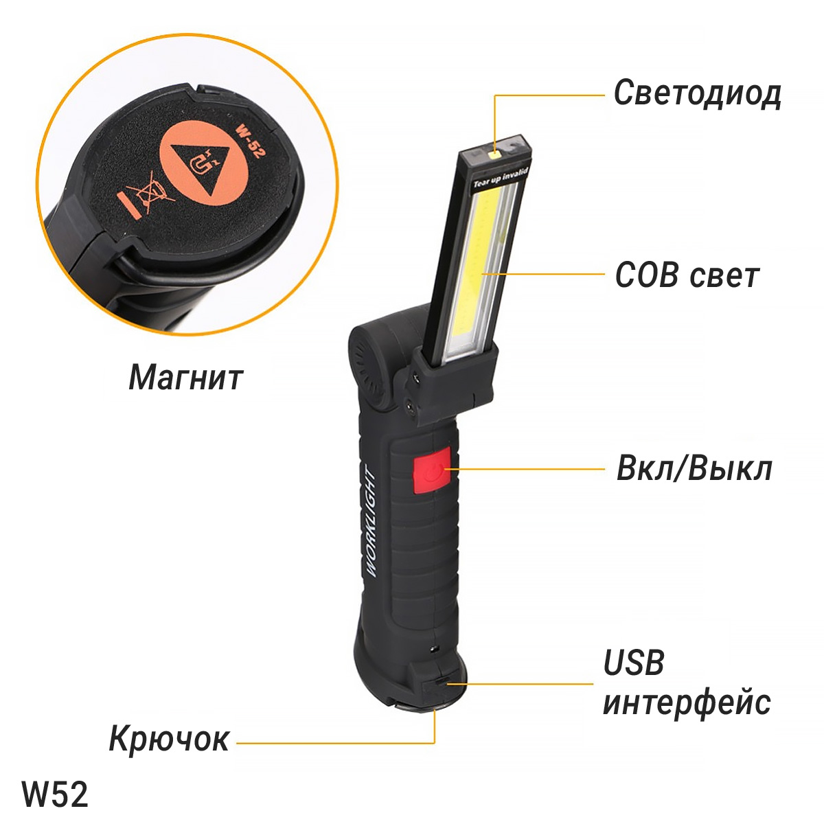 Складная рабочая светодиодная LED лампа W52 применяется в автомастерских, СТО, а также в различных мастерских и в быту. Светодиоды типа T6 обеспечивает вам отличную яркость.