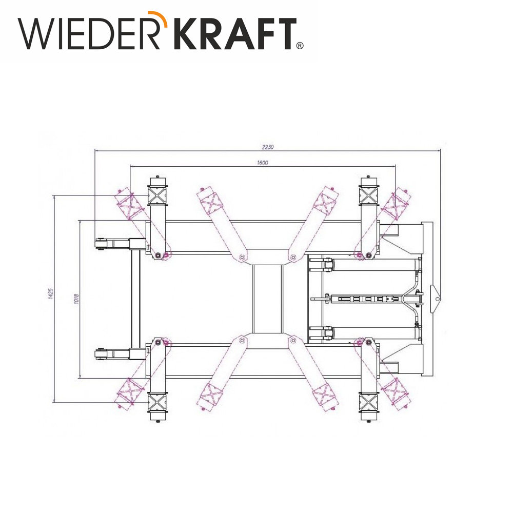 Мобильный ножничный подъемник с электрогидравлическим приводом WIEDERKRAFT (WDK-503), благодаря облегченной конструкции и металлическим колесам его можно перемещать по рабочей зоне и использовать для арматурных, шиномонтажных и других работ. Платформа с четырьмя поворотными лапами и резиновыми упорами позволяют поднимать как легковые автомобили, так и автомобили с несущей рамой кузова. Два гидроцилиндра с клапаном синхронизации рассчитаны на нагрузку до 3 тонн, а надежная система блокировки защищает подъемник от произвольного спуска.