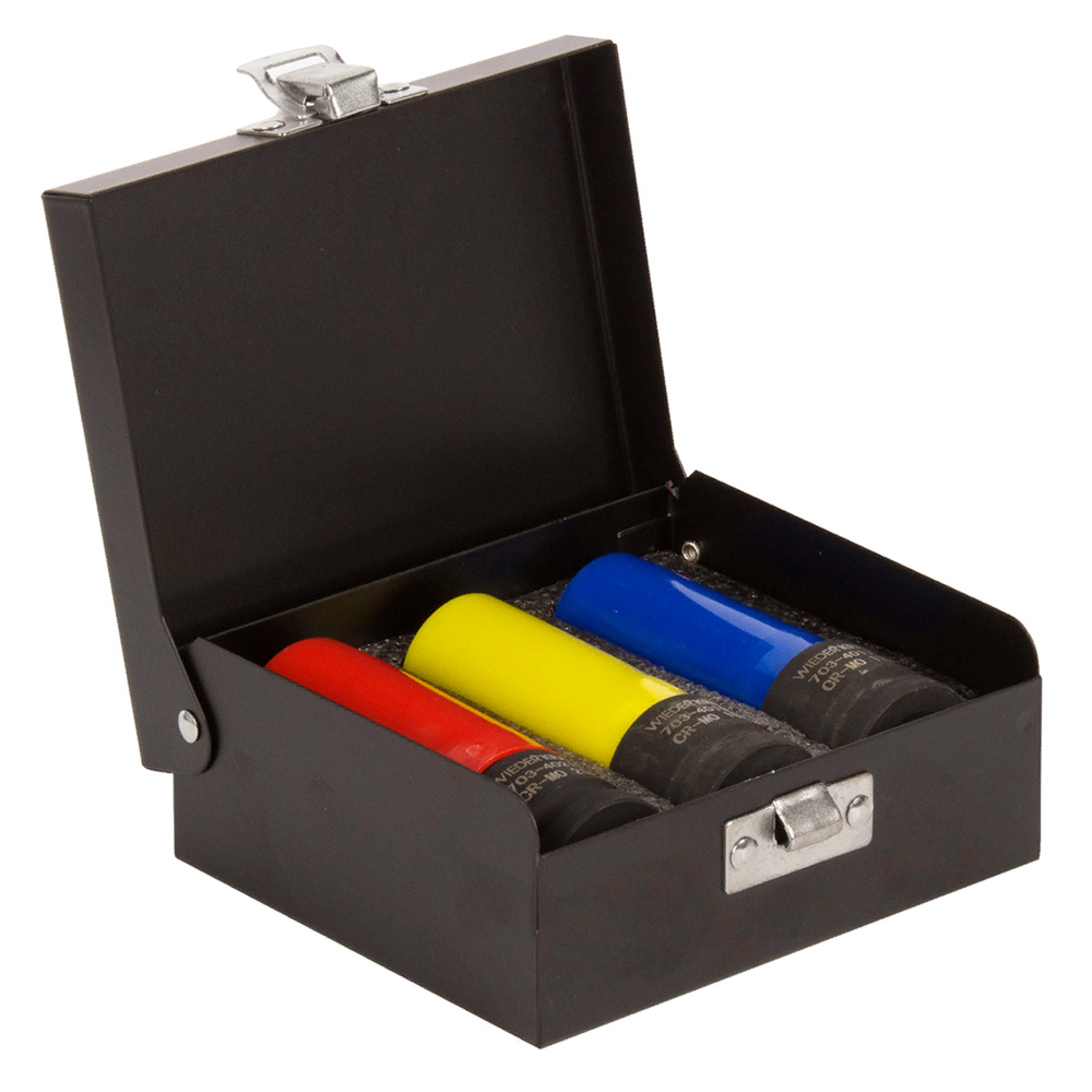 Набор ударных глубоких тонкостенных торцевых головок WIEDERKRAFT (WDK-703HD, HEAVY DUTY), с размером привода 1/2″ применяется для демонтаж/монтажа болтов-гаек литых дисков автомобилей с помощью инструмента ударного действия (пневматические и электрические гайковерты).
