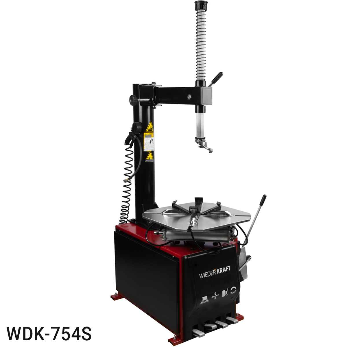 Cтанок шиномонтажный полуавтоматический WIEDERKRAFT WDK-754S применяется для монтажа и демонтажа шин легковых автомобилей. Оснащен устройством для отрыва кромки шин с большой резиновой накладкой для бережной работы с дисками и резиной. Монтажная головка позиционируется относительно обода по горизонтали и вертикали. Поворотная консоль экономит место в цеху, таким образом станок можно поставить вплотную к стене. Обладает эргономичным расположением педалей управления.