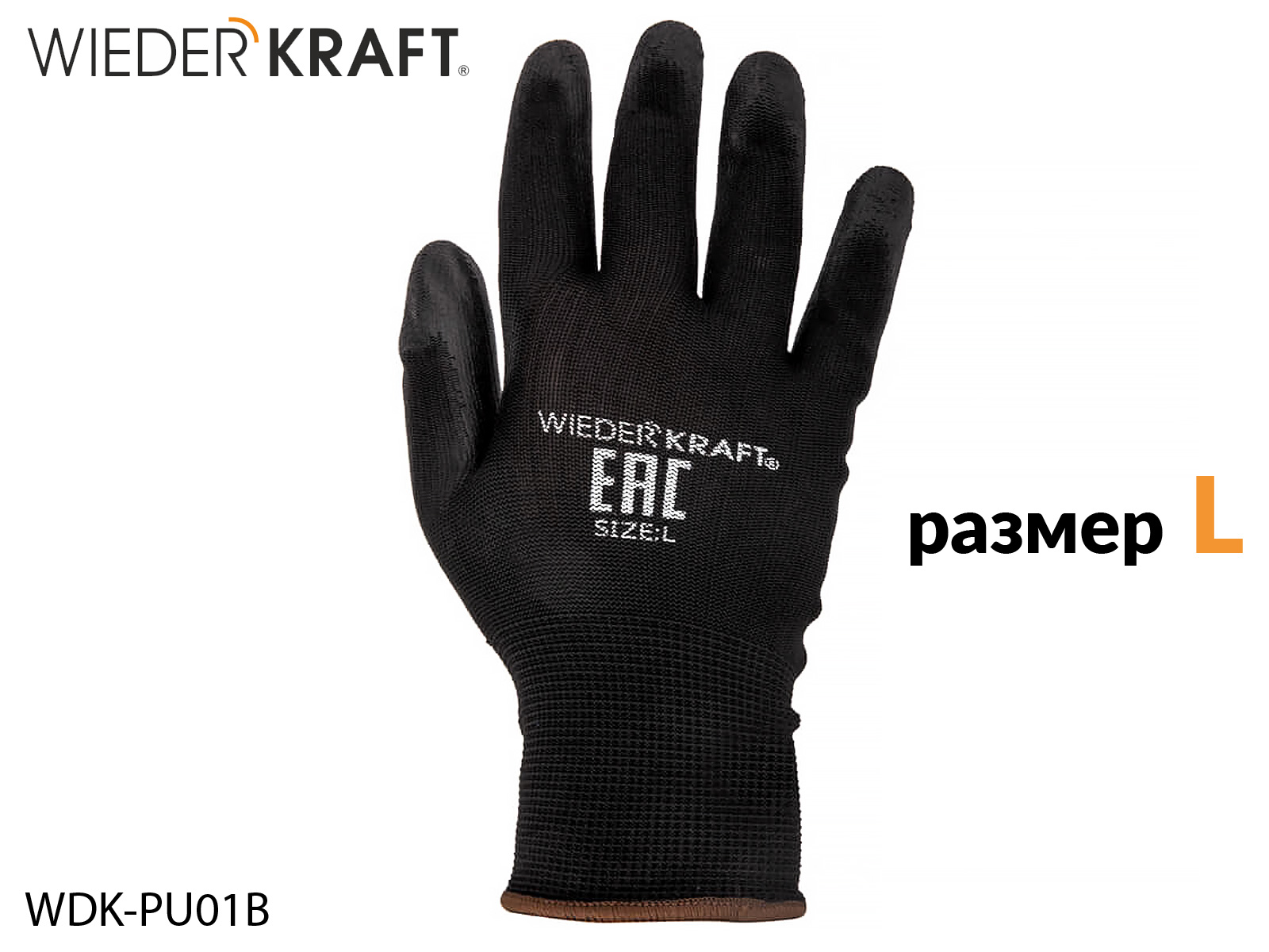 Перчатки с PU покрытием L черные для механических работ WIEDERKRAFT (пара)