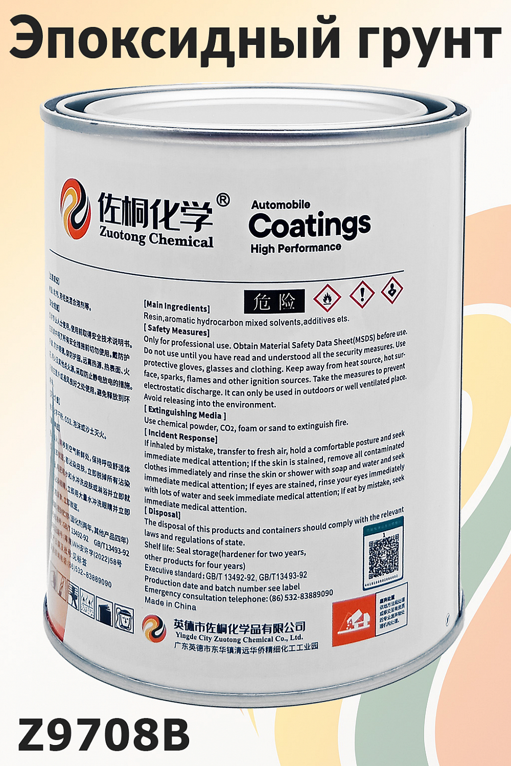 Эпоксидный грунт ZUOTONG CHEMICAL (Z9708B) — двухкомпонентный антикоррозионный грунт с отличной адгезией к металлу. Подходит для стали, алюминия, оцинкованной и нержавеющей стали. Защищает от ржавчины и солевого тумана, идеален для кузовного ремонта авто. Грунт создаёт прочную основу под последующие покрытия.