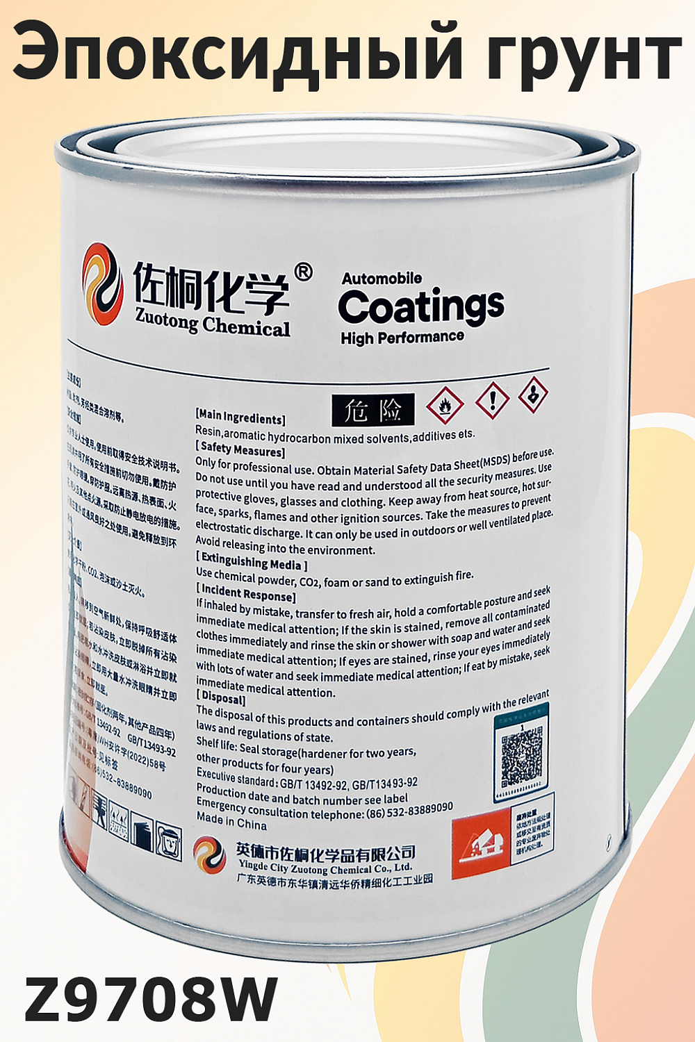 Эпоксидный грунт ZUOTONG CHEMICAL (Z9708W) — двухкомпонентный антикоррозионный грунт с отличной адгезией к металлу. Подходит для стали, алюминия, оцинкованной и нержавеющей стали. Защищает от ржавчины и солевого тумана, идеален для кузовного ремонта авто. Грунт создаёт прочную основу под последующие покрытия.