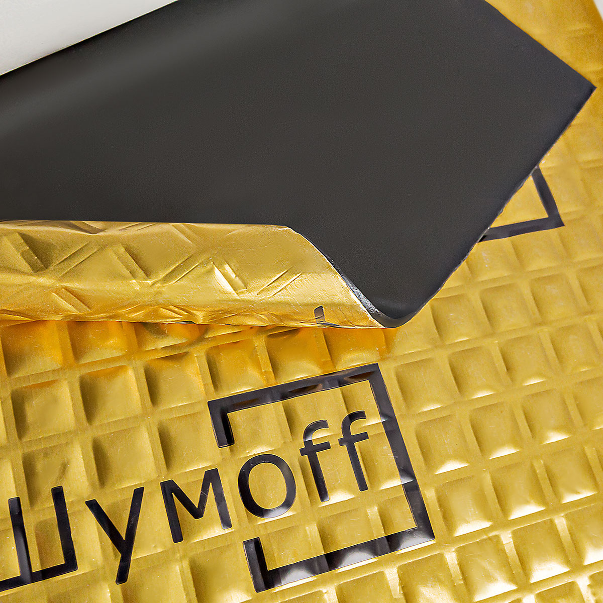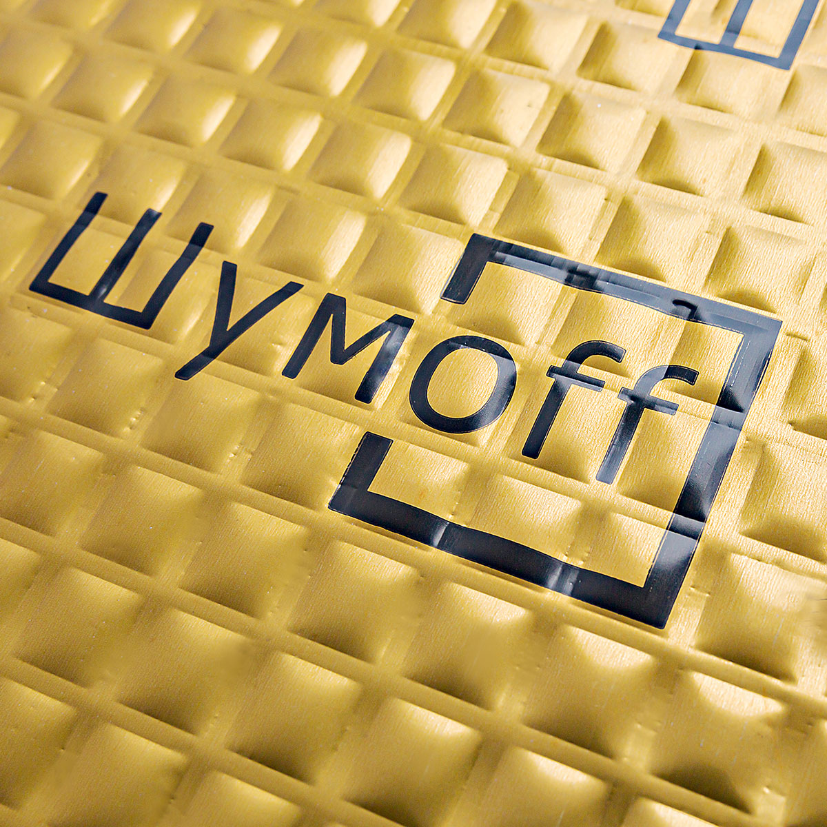 Вибропоглощающий материал премиум линейки М4 золотого цвета ШУМОФФ - лицевое покрытие представляет собой алюминиевую фольгу толщиной 100мкм с уникальной структурой тиснения (в виде квадратов), что обеспечивает максимальную жесткость после установки. Материал НЕ битумный , мастичный! Мастика состоит из высоконаполненного полимера на каучуковой основе, что способствует максимально защитить кузов от коррозии, а также обеспечивает постоянную липкость и эластичность материала даже при отрицательных температурах. Максимальная температура, при которой виброизоляционный материал находится в стабильном состоянии - 180°С.