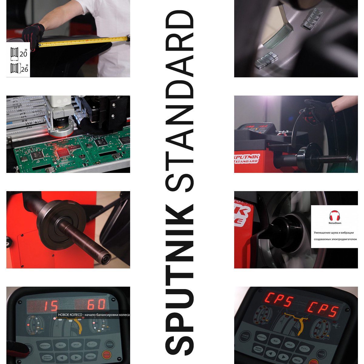 • Sputnik Standard оснащен электронной линейкой для автоматического ввода дистанции и диаметра. По сравнению с ручным вводом использование электронной линейки обеспечивает высокую скорость работы, исключает ошибки при вводе параметров колеса.
